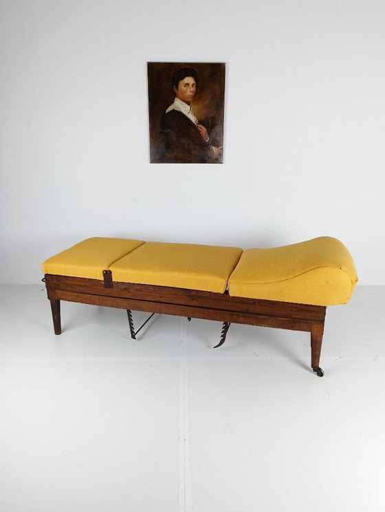 Esta es una excepcional cama de hospital militar inglesa del siglo XIX, fabricada por un artesano desconocido. La cama ha sido cuidadosamente retapizada y se mantiene en perfecto estado de funcionamiento. La madera ha sido bien cuidada y tratada, conservando su carácter original, aunque presenta signos de desgaste propios del uso y la antigüedad. Esta pieza única es un testimonio de la artesanía histórica y su durabilidad.