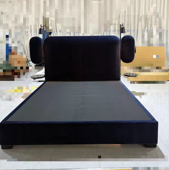 Elegante cama doble tapizada (180×200 cm) con cabecero alto acolchado. Construcción sólida y estable.