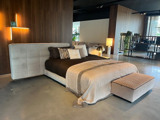 La cama Lawrence da un giro contemporáneo a la clásica cama tapizada. El cabecero acolchado está dividido en dos elementos separados con dos alturas diferentes. El cabecero de la cama Lawrence tiene elegantes costuras en un moderno y gráfico patrón de cuadrados. La base de la cama es un somier que, gracias al gran número de muelles ensacados, garantiza una calidad de sueño óptima. Tamaño del cabecero 380 de ancho x 105 de alto, colchón 200 x 200 cm.
