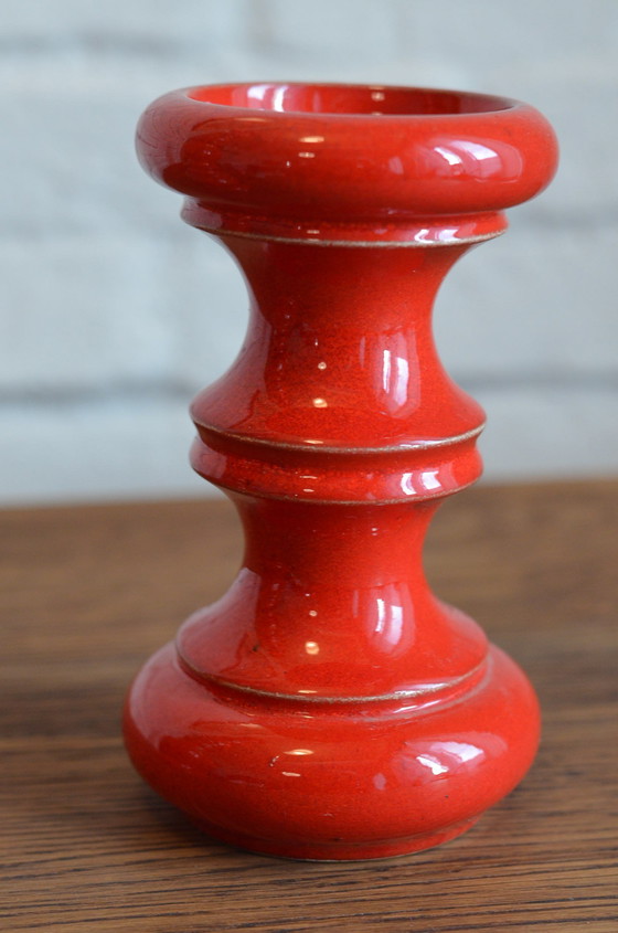 Candelabro vintage rojo. En muy buen estado. Sin abolladuras ni daños. Dimensiones: Altura aprox. 14,5 cm, diámetro aprox. 8,5 cm. Original de la década de 1960.