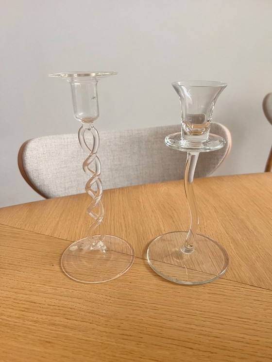 Candelabro de cristal transparente de forma orgánica.