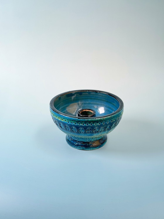 Este hermoso candelabro de cerámica en forma de cuenco es un ejemplo clásico de la colección Rimini Blu diseñada por Aldo Londi para Bitossi Ceramiche, Italia, probablemente producida en la década de 1960. El cuenco presenta el esmaltado azul y turquesa intenso característico de Londi, con patrones geométricos tallados a mano en relieve: una mezcla de motivos de estrellas, bordes punteados y tramado vertical. La textura detallada y el efecto de color en capas son el resultado de la artesanía experta y el acabado manual, lo que hace que cada pieza sea única. Un llamativo objeto decorativo, combina la estética moderna de mediados de siglo con el arte cerámico italiano tradicional, perfecto para coleccionistas o como pieza destacada en cualquier interior. Aldo Londi y Bitossi Rimini Blu: un legado colorido en cerámica Aldo Londi (1911–2003) fue un ceramista italiano visionario cuyo trabajo ayudó a dar forma al panorama de la cerámica del siglo XX. Nacido en Montelupo Fiorentino, Italia, la trayectoria de Londi en la cerámica comenzó a temprana edad: a los 11 años, ya era aprendiz en una fábrica local de cerámica. Su trayectoria creativa se vio interrumpida por la Segunda Guerra Mundial, durante la cual pasó cinco años como prisionero de guerra en Sudáfrica. Sorprendentemente, en esta época profundizó sus habilidades artísticas a través de la pintura y la escultura. Después de la guerra, Londi regresó a Italia y se convirtió en el director artístico de Bitossi Ceramiche en 1946. Durante tres décadas, transformó la identidad de la empresa, fusionando la artesanía tradicional con el diseño moderno y experimental. Su estilo se inspiró en motivos históricos y arte rústico, pero siempre con un toque fresco y contemporáneo. La creación más icónica de Londi es la colección "Rimini Blu", presentada en 1959. Estas impactantes piezas se reconocen al instante por su vibrante esmaltado azul turquesa y sus intrincados patrones geométricos abstractos. Las texturas y los minuciosos tallados de cada pieza crean una superficie táctil y luminosa que evoca el mar resplandeciente. La colección recibió su nombre de la ciudad costera de Rímini, reflejando el estilo de vida italiano de mediados de siglo, admirado en todo el mundo. Hoy, Rimini Blu goza de reconocimiento mundial y se sigue produciendo, testimonio del diseño atemporal y la innovación artística de Londi. Su legado perdura en hogares, galerías y colecciones, capturando para siempre el espíritu de la creatividad italiana en un intenso azul cerámico. Se entregará en un embalaje perfecto y protegido.