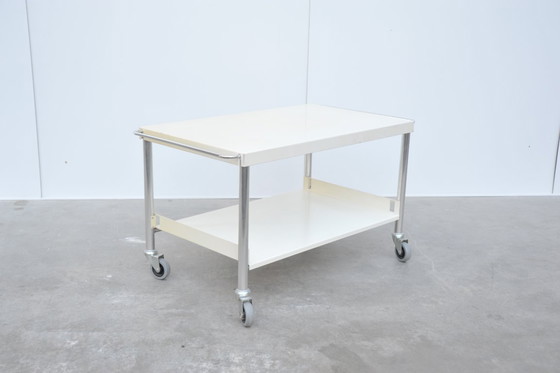 Carrito de servicio lacado en blanco, fabricado en metal y cromo (años 60).