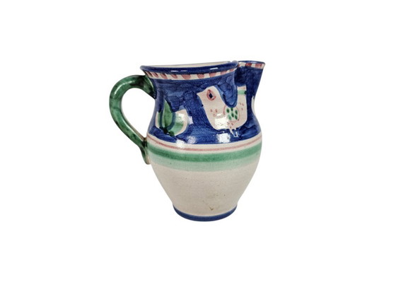 Jarra de cerámica pintada a mano de la línea "Campagna Chicken", fabricada por Ceramica Artistica Solimene en Vietri sul Mare.