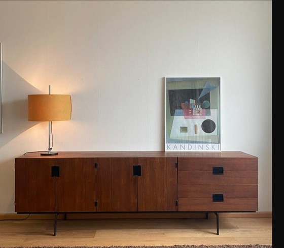 Este aparador DU03 Pastoe de Cees Braakman es un impresionante ejemplo del diseño moderno de mediados de siglo. Fabricado en madera de alta calidad con detalles metálicos, ofrece estilo y funcionalidad. El aparador tiene un amplio espacio de almacenamiento con múltiples puertas y cajones, perfecto para organizar sus pertenencias. El diseño elegante y el cálido tono marrón lo convierten en una pieza atemporal que encaja en cualquier interior. Ligeros signos de uso por la edad.