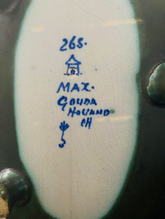 - Elaborada con cerámica de alta calidad, esta pieza exhibe los vibrantes colores característicos del movimiento Art Nouveau, con ricos tonos de verde, azul y naranja.