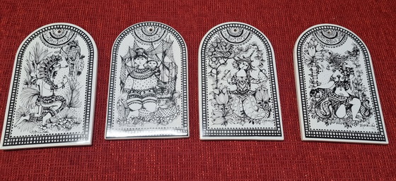Juego completo de cerámica de pared "Cuatro Direcciones" de Bjørn Wiinblad, fabricado por Rosenthal studio-linie (Alemania).