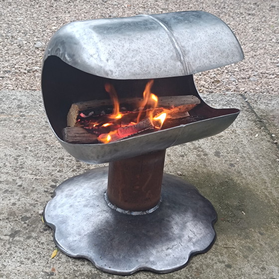 Aporte un toque de originalidad y convivencia a sus veladas al aire libre con este brasero artesanal, fabricado íntegramente con robustos materiales reciclados. Este modelo único está fabricado a partir de una botella de gas abierta y tumbada, montada sobre una robusta base hecha con un disco de destronque y un tubo de acero de gran diámetro. Cada pieza está cuidadosamente soldada para garantizar su estabilidad, seguridad y durabilidad.
