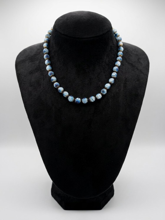 Collar de cristal de Murano azul claro con murrina - 44 cm
