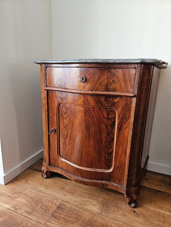 Se vende esta cómoda antigua con tapa de mármol, cajón e inserto. Perfecta como aparador o pieza de recibidor. ¡Esta cómoda ha vivido generaciones! La madera ha recibido un mantenimiento regular. La tapa de mármol se puede transportar por separado.