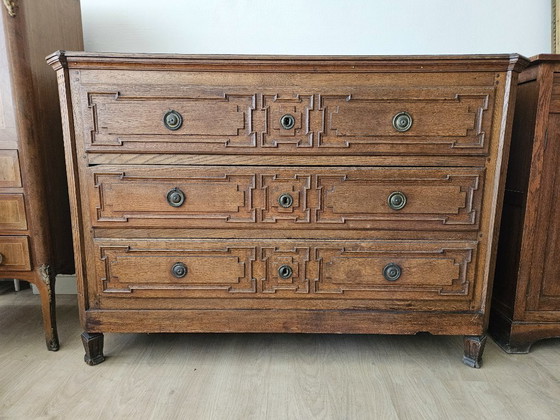 Esta cómoda antigua del siglo XVIII con 3 cajones y finos detalles llama la atención en cualquier interior, ya sea clásico o moderno.