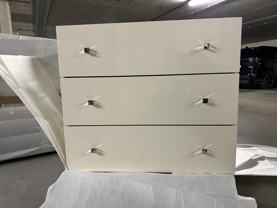 Esta moderna cómoda de 3 cajones es un complemento elegante y funcional para cualquier habitación. Con unas dimensiones de 80 x 75 x 45 cm, ofrece amplio espacio de almacenamiento con un diseño elegante. Los cajones presentan un suave acabado crema con elegantes tiradores plateados que le aportan un toque de sofisticación. Fabricada en madera y metal resistentes, esta pieza está hecha para durar. Ideal para dormitorios o salas de estar, combina practicidad con una estética contemporánea.