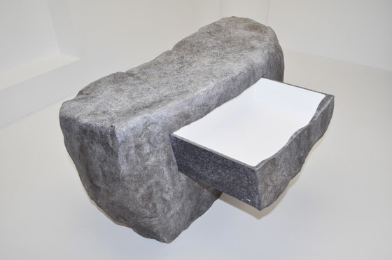 - Diseño innovador: La cómoda presenta una apariencia realista similar a la de una roca, creando un contraste impactante con su interior blanco y limpio.