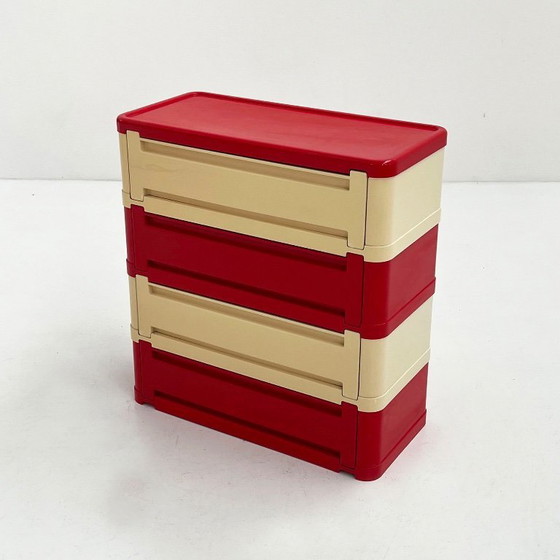 Cómoda roja y blanca Modelo 4964 de Olaf Von Bohr para Kartell, 1970s