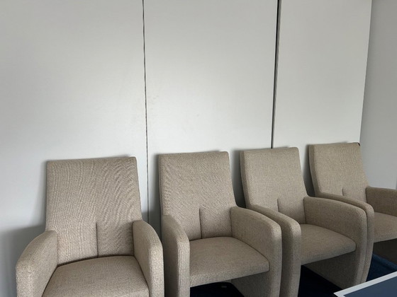 Estas cómodas sillas de reunión o comedor de Leolux ofrecen un aspecto moderno y están tapizadas en un tejido beige. Ideales tanto para salas de reuniones como para comedores, ofrecen una excelente experiencia de asiento. Las sillas son resistentes y duraderas, perfectas para un uso prolongado.
