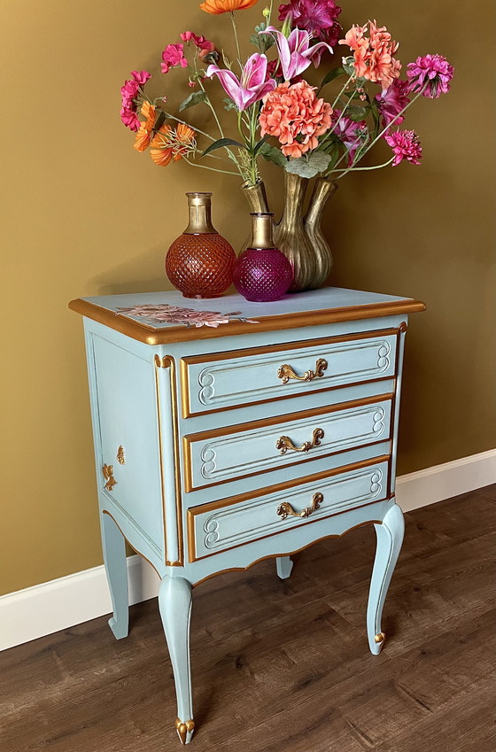 ¡Dale vida a tu interior con esta preciosa cómoda verde y dorada! Pintada en un cálido tono verde con pintura de tiza de Abbondanza.Paint y acabada con impresionantes transferencias florales de Redesignwithprima, esta cómoda irradia una atmósfera primaveral. Un toque de alegría floral es justo lo que necesitas para estos días fríos y húmedos. 🌸🌼 Dimensiones: Ancho: 55 cm Alto: 76 cm Fondo: 39 cm ¡Lleva la primavera a tu hogar con esta cómoda única!