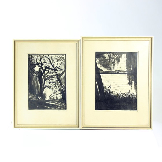 Este hermoso conjunto de dos pinturas originales en color negro sobre papel. Ambas están firmadas por el artista "Sestak" en 1972. Ambas comparten el mismo estilo y presentan un trabajo detallado. El artista pinta exclusivamente con pintura negra en diferentes tonos. La obra está enmarcada en marcos de madera originales bajo cristal para preservar su estado original. Los marcos presentan ligeros signos de desgaste, pero la obra se encuentra en excelentes condiciones. Las dos pinturas tienen dimensiones diferentes. La pieza más grande mide 46 cm (alto) x 35 cm (ancho), y la obra mide 30 cm (alto) x 21 cm. La pieza más pequeña mide 45 cm (alto) x 34 cm, y la obra mide 28 cm (alto) x 20 cm (ancho). Información de envío: Para artículos pequeños, utilizamos servicios de mensajería o paquetería exprés de confianza. Cada artículo se empaca cuidadosamente a mano para garantizar su llegada segura y en perfecto estado. Cuidamos cada pedido con sumo cuidado y solo utilizamos transportistas de confianza para una entrega segura. ¡Gracias por apoyar a nuestra pequeña empresa! ¡Significa mucho para nosotros!