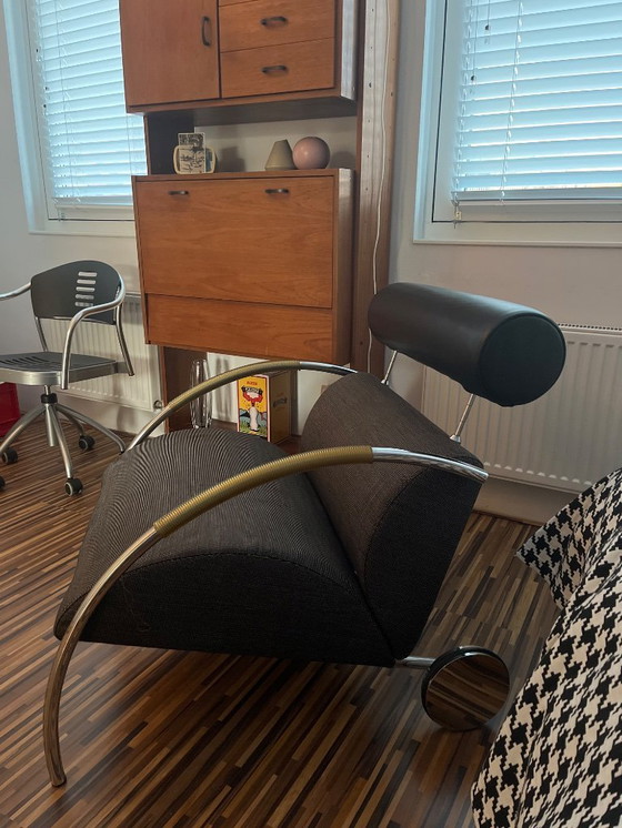 Esta es una hermosa silla Cor Zyclus, conocida por su diseño moderno y comodidad. La silla está en muy buenas condiciones con rellenos recientemente renovados, asegurando una experiencia de asiento cómoda. El tejido presenta pequeñas bolitas, pero en general, la silla mantiene su aspecto elegante. La combinación de metal y materiales textiles le da un aspecto elegante y contemporáneo, perfecto para cualquier interior moderno.