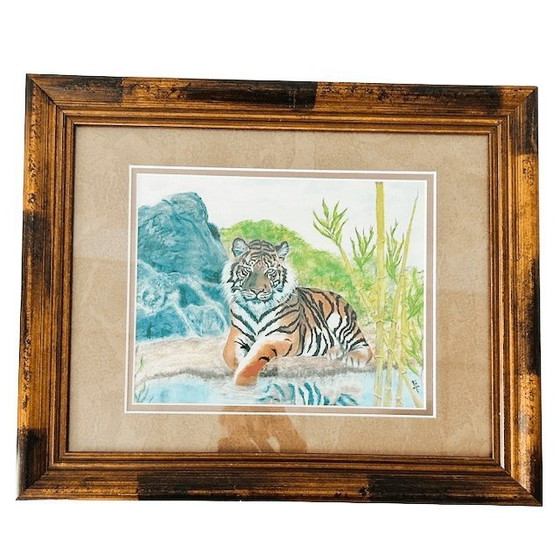 Cuadro enmarcado de Corinne Dell Aria, pintura al pastel de un tigre (años 2000)