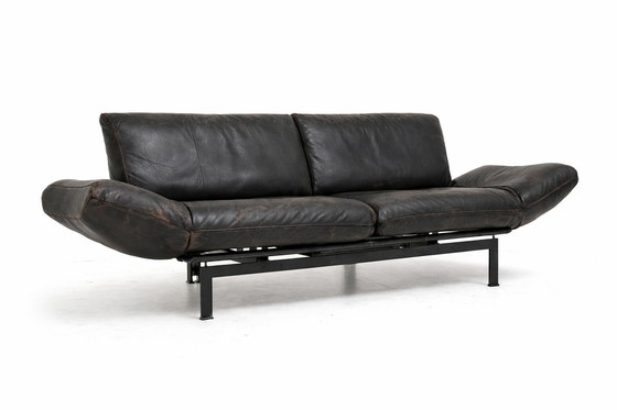 El sofá modular de piel premium Sede DS-140, de fabricación suiza, fue diseñado por Reto Figg en la década de 1980. Entre sus características distintivas se incluyen asientos giratorios (rotación de 90°) y reposacabezas ajustables, que permiten posiciones cómodas tanto para reclinarse como para descansar. Su robusta estructura metálica presenta un diseño clásico y funcional.