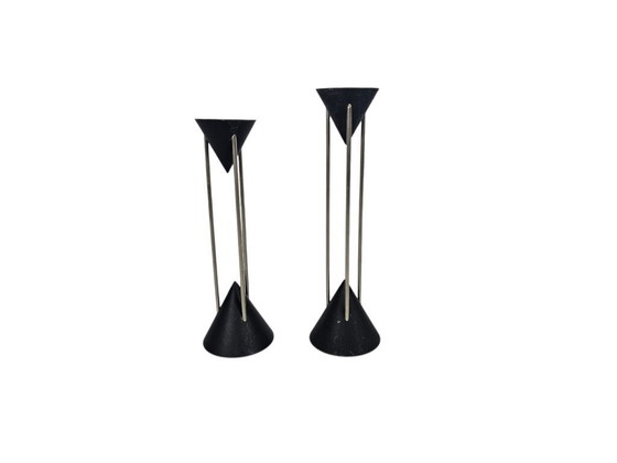 Candelabros posmodernos de estilo Memphis, diseñados por el diseñador alemán Markus Börgens para el fabricante D-Tec en la década de 1980.