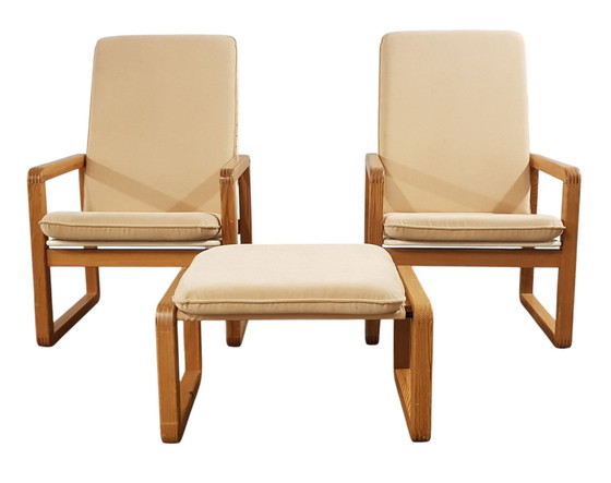 Diseño: Marianne & Knud Hagberg. Fabricación: Ikea. Modelo: Sälen ('82). Conjunto de muebles excepcional compuesto por: 2 sillones y 1 reposapiés/otomana. Dimensiones: Al. 98 cm, An. 72 cm y Pr. 70 cm. Información: Llamar/Solicitar +316 41141140.