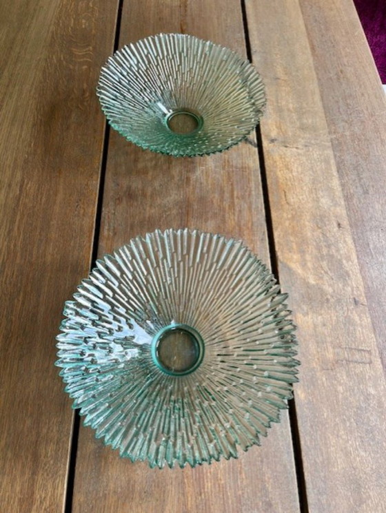 Los diseños de Wirkkala de Finlandia (1915-1985) son muy apreciados. Son bonitos, saltarines, decorativos y atemporales. Pero también se pueden utilizar para la fruta. Encajan en cualquier interior. En un armario o aparador, quedarán preciosos uno al lado del otro. Son cuencos de cristal, pero también tienen un suave color verde claro, que hace referencia a "La aurora boreal". También se pueden ver cristales de hielo en ellos.