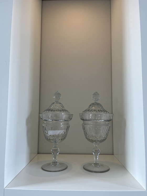 Dos hermosos frascos de jengibre de cristal antiguos.