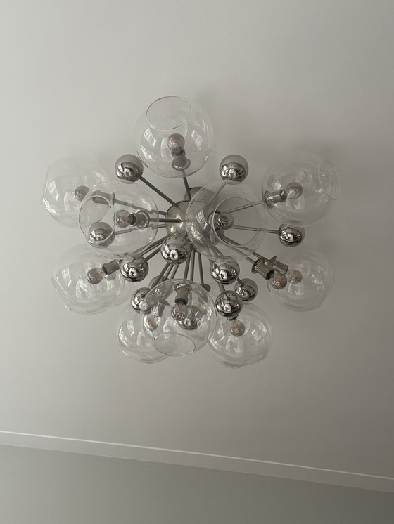 Ilumine su espacio con la sofisticada elegancia de la lámpara de techo Soleil de Eichholtz. Esta moderna luminaria, con su llamativo diseño, cuenta con un grupo de globos de cristal transparente que crean un cautivador juego de luces y sombras. Perfecta para añadir un toque de lujo a cualquier habitación, la lámpara Soleil es a la vez una solución de iluminación funcional y una pieza llamativa.