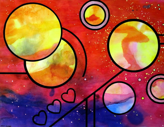 Pintura única. Original. Título: El amor está en el aire, pintura acrílica sobre papel libre de ácido, 50 x 65 cm. Pintada por Erica Muizer en 2010. Erica Muizer es una artista de Spijkenisse, Países Bajos. Se formó en la Academia Willem de Kooning de Róterdam. Crea numerosas pinturas sobre lienzo o papel con acrílico, acuarela y óleo. Disfruta de la variedad de estilos y técnicas.