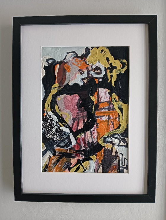 Esta obra de gran expresividad pictórica fue creada con pintura acrílica y laca sobre papel. Sus dimensiones son 42 x 32 cm y tiene un grosor de 3,5 cm (incluyendo el paspartú y el marco negro). La obra en sí mide 30 x 20 cm. Fechada y firmada a mano en 2025. Directamente del estudio en Weert (Países Bajos). Para más información, visite: www.robjacobs.art