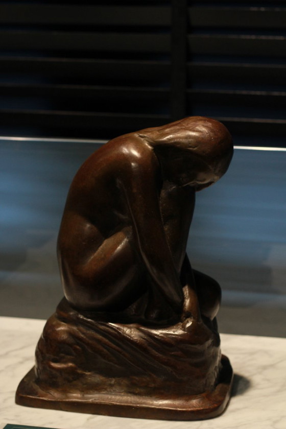 Esta exquisita escultura de bronce, titulada "Enamorado" de E. Cornelis, captura la esencia de las emociones humanas con una gracia extraordinaria. La pieza representa una figura en pose contemplativa, que evoca introspección y serenidad. Su rica pátina marrón le aporta profundidad y calidez, convirtiéndola en un punto focal cautivador en cualquier ambiente.