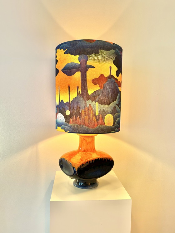 Esta extraordinaria lámpara de estilo futurista se basa en una lámpara de cerámica de la serie PAN de Goebel, diseñada por Cari Zalloni. Los diseños de Zalloni se encuentran entre los ejemplos más icónicos de la cerámica moderna alemana y son muy codiciados por los coleccionistas.