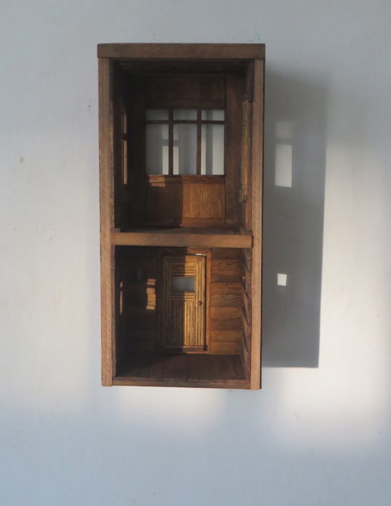 Pieza única de arte mural de madera pintada. Artista Eric van Solm. Formación: Willem de Kooning, Róterdam, 1980-1985, Departamento de Diseño Plástico y Espacial. Registrado en el R.K.D.