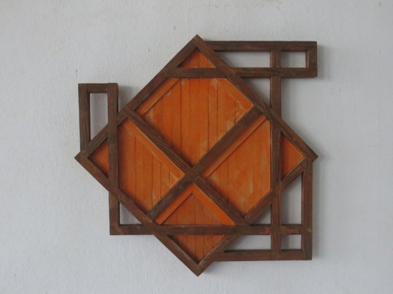 Escultura geométrica original de madera para pared. Artista: Eric van Solm. Formación: Willem de Kooning, Róterdam, 1980-1985, Departamento de Diseño Plástico y Espacial. Registrado en el R.K.D.