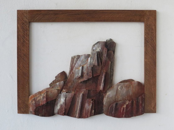 Pieza única de arte mural de madera pintada. Artista Eric van Solm. Formación: Willem de Kooning, Róterdam, 1980-1985, Departamento de Diseño Plástico y Espacial. Registrado en el R.K.D.