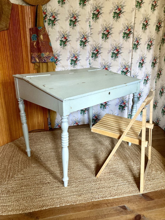 Encantador escritorio inclinado de madera de cerezo pintada, con frente abatible y patas torneadas. Finales del siglo XIX/principios del XX.