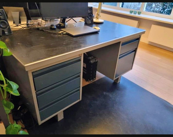 Descubra la robustez y funcionalidad de este escritorio de acero, perfecto para cualquier entorno de trabajo profesional. Con su aspecto industrial y su robusta construcción, este escritorio ofrece estilo y durabilidad.