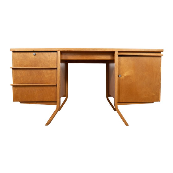 Escritorio EB04 de Cees Braakman para Pastoe. El escritorio EB04 forma parte de la serie Birch. Incluye una puerta y espacio de trabajo adicional a la derecha, y tres cajones a la izquierda.
