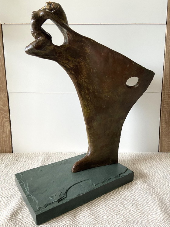 Magnífica escultura, elaborada artísticamente a partir de un solo bloque de bronce, con huecos estructurales, líneas tensas y un equilibrio magistral.