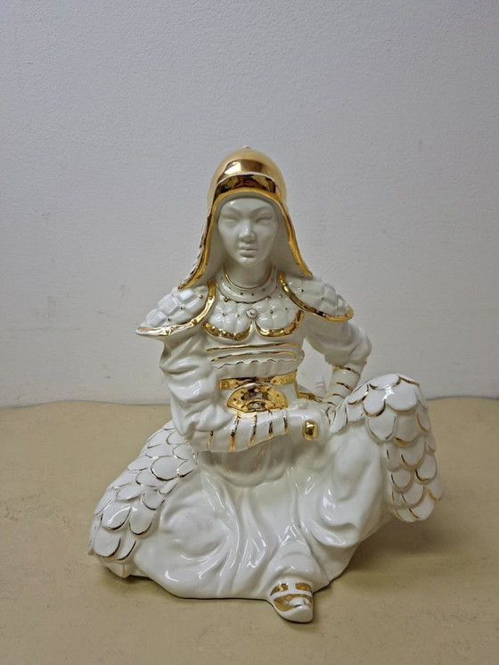 Escultura de cerámica de un samurai sentado, realizada en Italia hacia 1970.