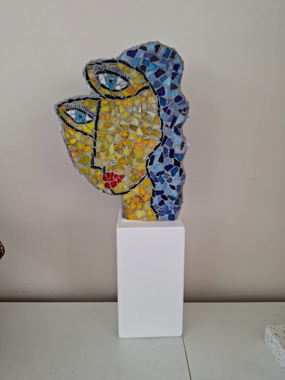 Escultura abstracta de mosaico de vidrio . Materiales duraderos, elaboración estética, diseño propio. La escultura es auténtica, única e irrepetible. La escultura es también un objeto de diseño, intemporal y un valor añadido para el interior. La escultura está firmada a mano y se entrega con certificado. Marie-Jeanne van de Velde (MJ), 15.10.1957 es una artista flamenca contemporánea de Ronse, Bélgica. Página web ; https:// www.mjmad.be, Arts and Crafts by MJ. instagram/bymjmad. Nacida con ojo artístico y pasión por la pintura, la escultura, la joyería y la cerámica, crea bajo el nombre de MJ. La obra puede ser abstracta o figurativa. El material puede adquirir un significado estético o simbólico en el contexto del conjunto de la obra, puede conservar algo de su identidad original. Su carrera comenzó como pintora profesional en 1988 y entretanto se convirtió también en una talentosa ceramista, siempre experimentando con nuevos materiales y técnicas. Sus obras se exponen tanto en su país como en el extranjero y en su propia galería de Ronse (B). Cada obra es auténtica y está firmada a mano.