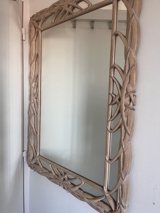 Este elegante espejo cuenta con un marco de madera finamente elaborado con detalles intrincados, que aporta un toque de sofisticación a cualquier estancia. Sus tonos neutros lo hacen versátil y se adapta a diversos estilos decorativos, mientras que su cuidada confección garantiza su durabilidad.