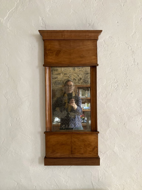 Espejo antiguo Biedermeier chapado en madera de cerezo, sur de Alemania, circa 1830.