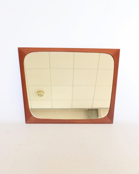 Precioso espejo asimétrico de teca del fabricante danés Aarhus Glasimport. Su sencillez es impresionante. Se cuelga fácilmente con un solo clavo o tornillo. ¿Te animarás a mirarte en este hermoso espejo?