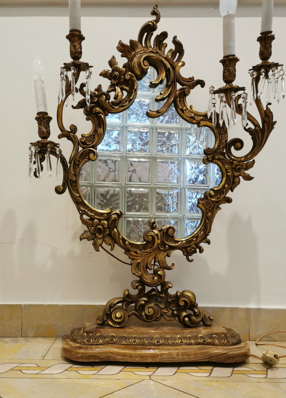 Espejo de 1910, en bronce, con dos lámparas de candelabro y base de mármol. Los portalámparas son de opalina blanca (una de ellas está rota) y conserva todos los componentes eléctricos antiguos, el enchufe (falta uno de los conectores), el portalámparas de porcelana y el cableado antiguo. Esto lo convierte en una pieza de coleccionista, dado su estado de conservación. Dimensiones de la base: 42 x 12 x 5 cm. Todas las piezas que se venden en nuestra tienda son vintage/antiguas, por lo que pueden presentar desgaste y signos del paso del tiempo. Por favor, amplíe las fotos para evaluar el estado del artículo según su criterio. El artículo está sujeto a disponibilidad en tienda. #candelabros #velas #bronce #antiguo #antiguedades #candelabrosbronce #vintage #brocante #candlesticks #ancien #ancienbrasscandlestick #candlesticksbrass #candles #brass #old #antiques #antigo #laton #miroir #mirror #spiegel #antiquitat #specchio #antiek #antiquiteiten #ergoud #antike