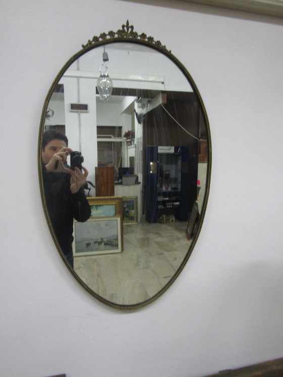 Este elegante espejo estilo Gio Ponti es un ejemplo refinado del diseño del siglo XX. Su marco de latón chapado en oro aporta un toque de lujo y sofisticación, perfecto para realzar cualquier espacio con un toque de clase atemporal.