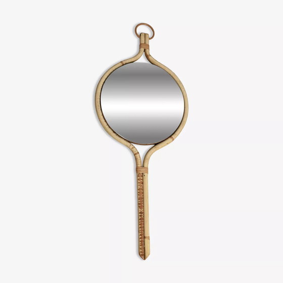 Dimensiones: Alto 72 x Ancho 31 x Profundidad 3 Color: Madera (color) Materiales: Ratán y mimbre Estilo: Espejo vintage al estilo de Louis Sognot, ratán, Francia, circa 1950. Numerosas picaduras de estaño. Ver fotos. En buen estado. Diseño clásico de los años 50.