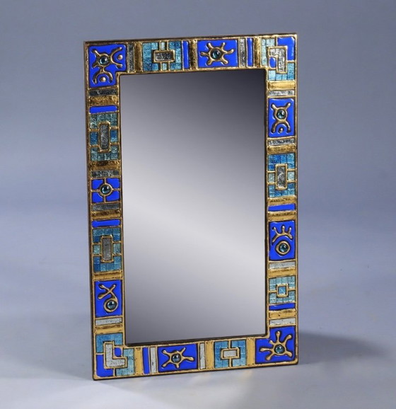 Este exquisito espejo francés de mediados de siglo presenta un llamativo diseño con un vibrante marco azul y dorado. Los intrincados patrones y la artesanía de alta calidad lo convierten en una pieza destacada para cualquier habitación. Su estilo moderno de mediados de siglo añade un toque de elegancia y sofisticación, perfecto para realzar la decoración de su hogar.