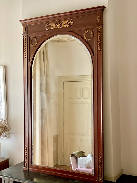 Los herrajes de bronce son idénticos a los que se encuentran en algunos muebles imperiales del Palacio Real de la plaza Dam. Se desconoce si este espejo se fabricó para la Casa Real. Sin embargo, el espejo es un ejemplar único.